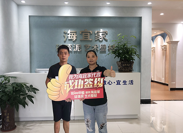 近日,韶关始兴的彭总与海宜家签订加盟协议,正式成为海宜家大家庭的一员,也进一步完善了海宜家韶关地区的销售服务网络,让始兴的消费者能够更加便捷的体验选购海宜家硅藻泥、艺术壁材系列环保墙面装饰材料。